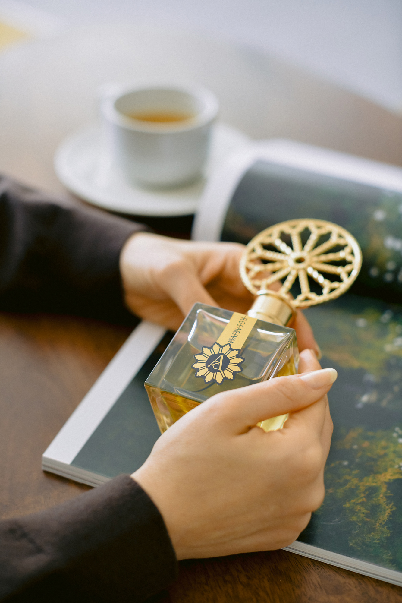 Un parfum lemnos si catifelat care te poarta catre o lume mistica, o sacralitate intima si autentica.